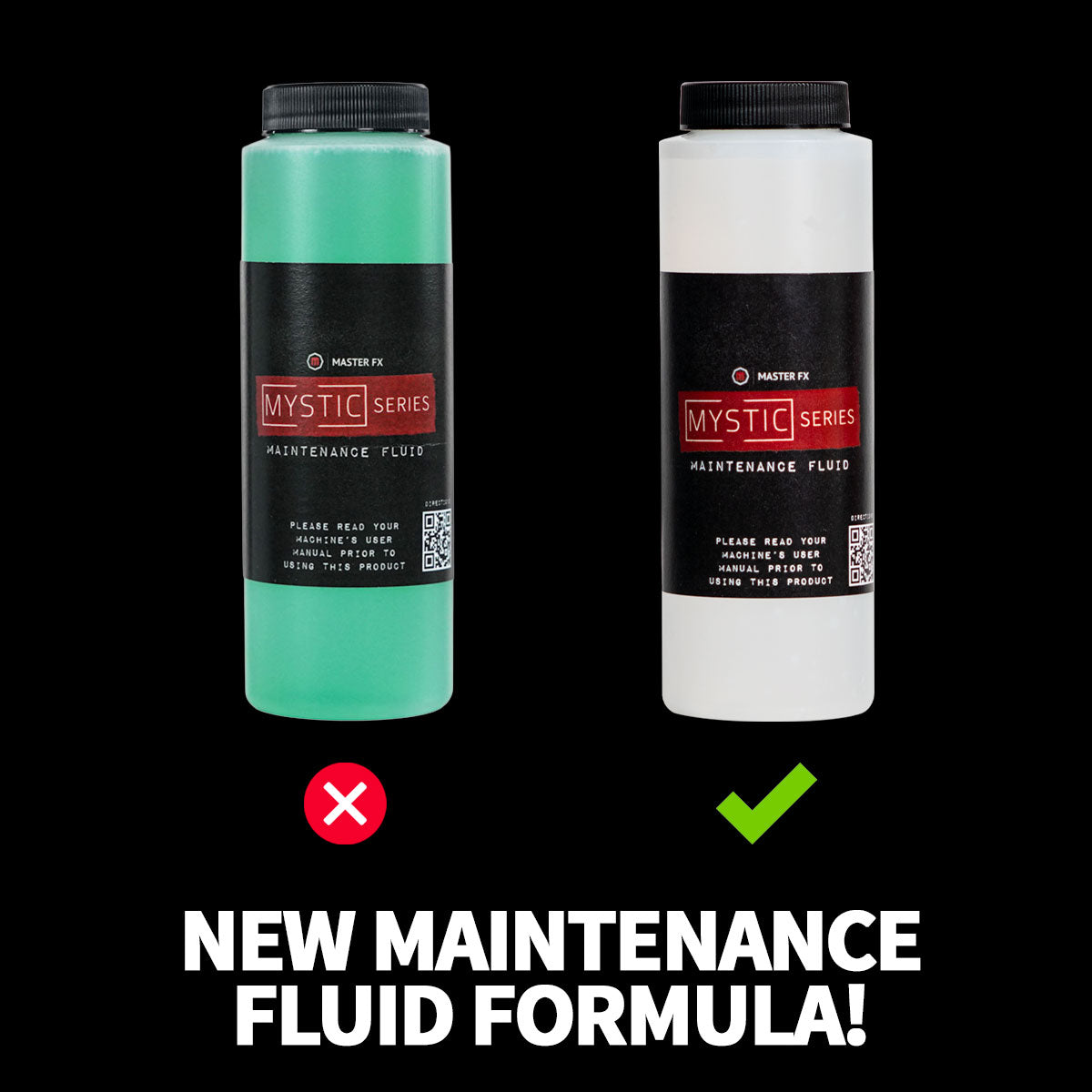 The updated Mystic maintenance procedure requires the new Mystic Maintenance Fluid. Use of the previous formula is not compatible and may result in damage to your machine.